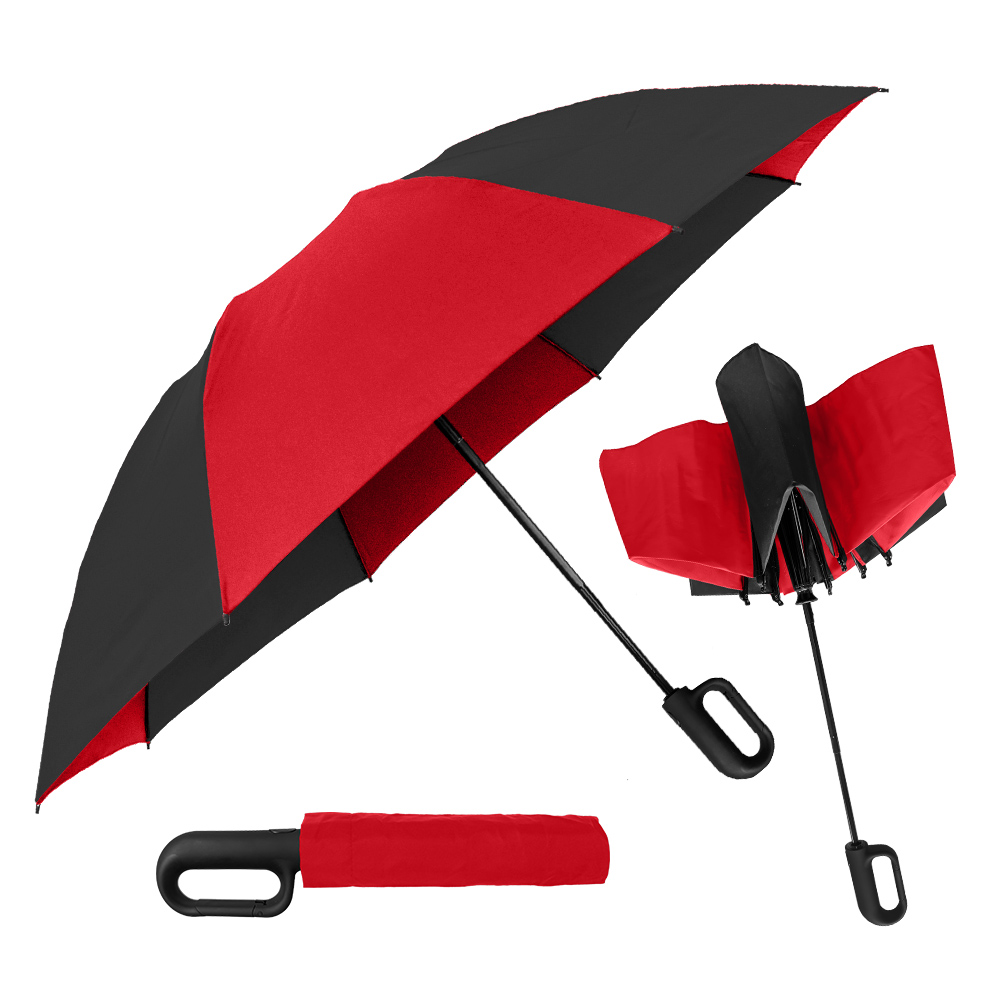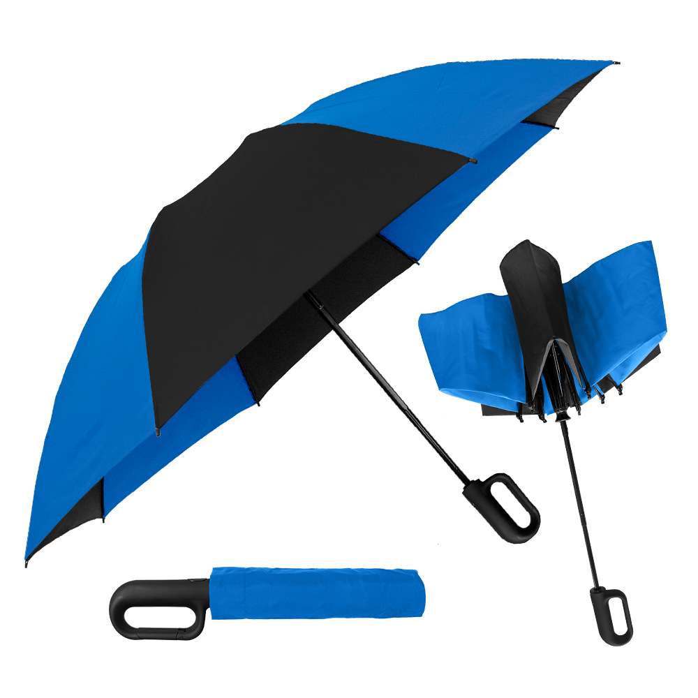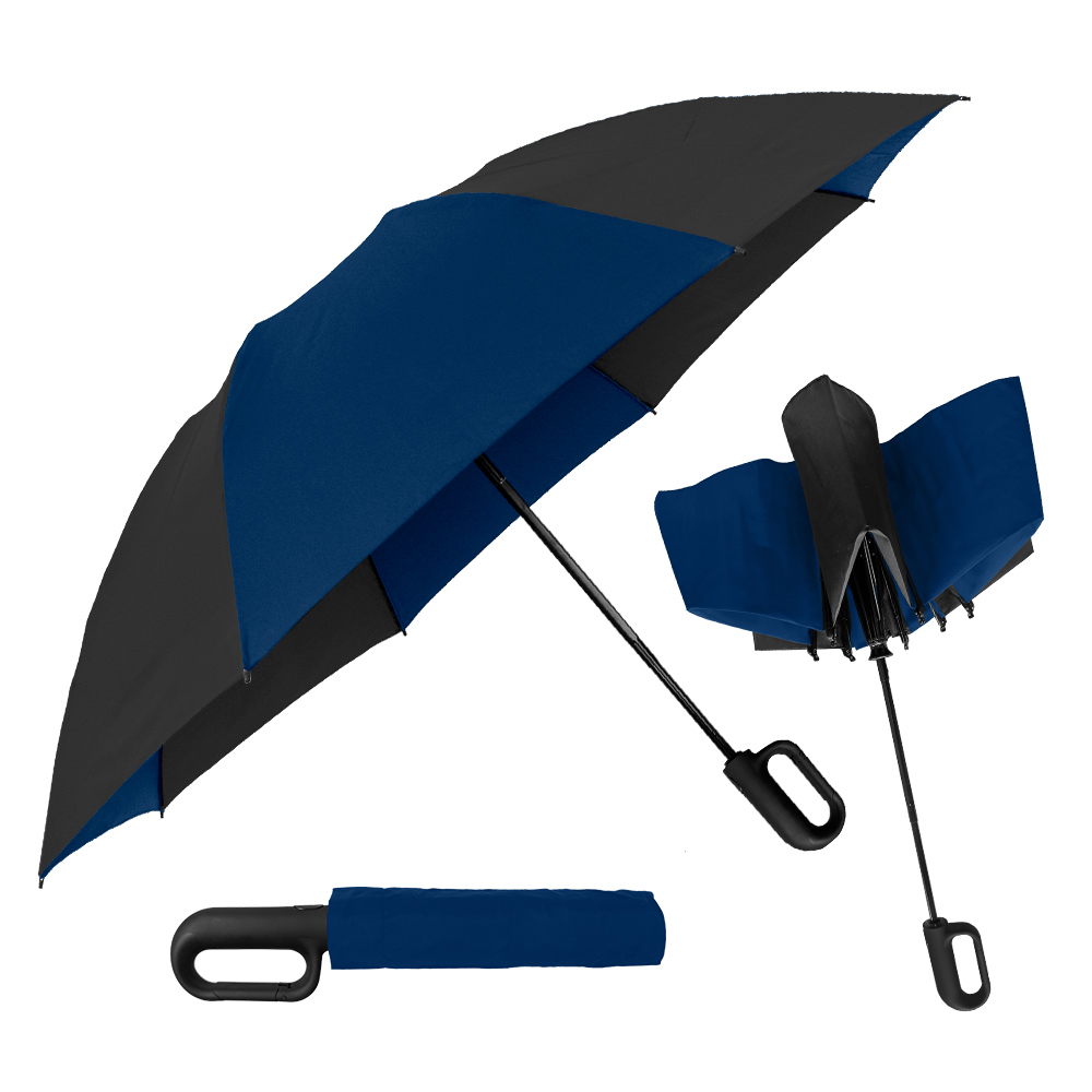 Get ahold of everyone’s attention with this carabiner handle 46'' arc canopy inverted umbrella! Its secure clip action comes in very handy when you want to attach it to a coat belt loop, hang from a hook or doorknob, or secure it to a bag or pocketbook. Like all our inverted umbrellas, the Carabiner is designed to protect you from the rain AND a rain-soaked umbrella. It closes in reverse fashion, keeping the wet side of the umbrella contained and away from you. This intelligent design makes it easy to open and close anywhere, keeping you dry from start to finish. Folds to just 13" long and includes a matching fabric case.
