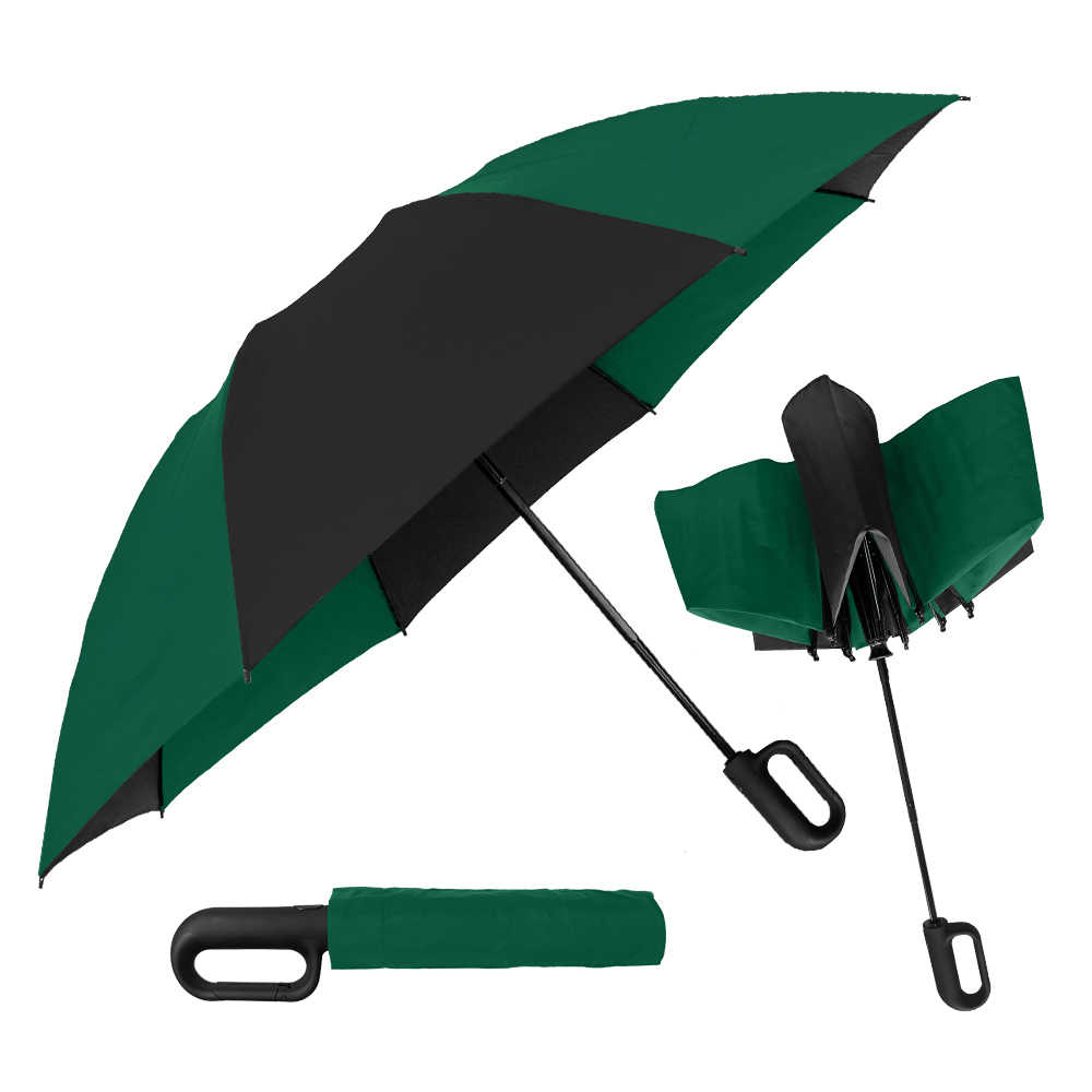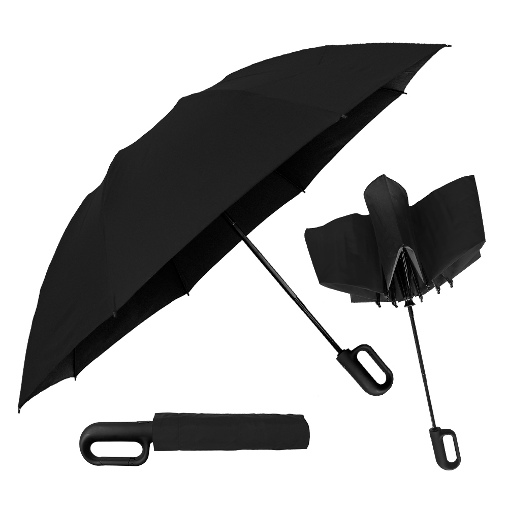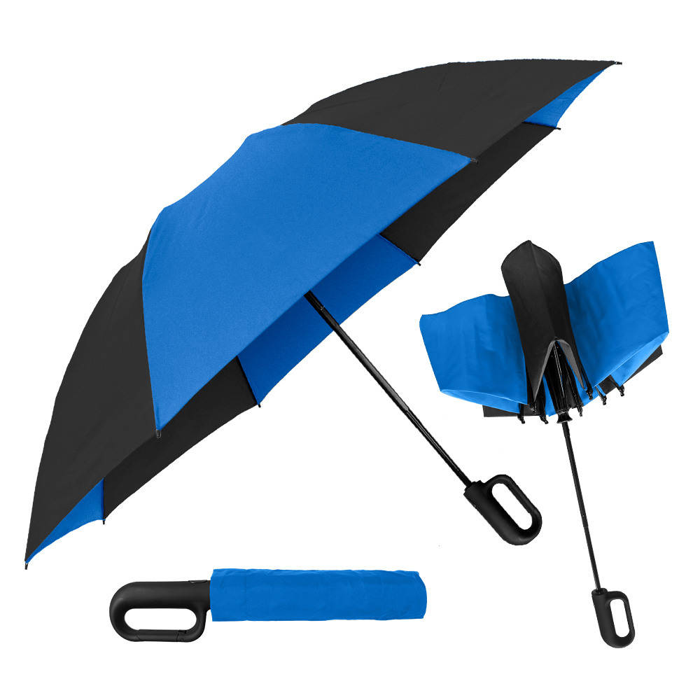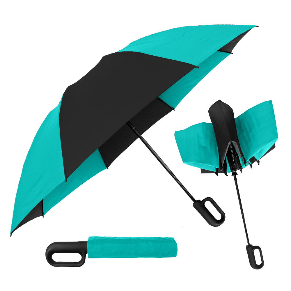 Get ahold of everyone’s attention with this carabiner handle 46'' arc canopy inverted umbrella! Its secure clip action comes in very handy when you want to attach it to a coat belt loop, hang from a hook or doorknob, or secure it to a bag or pocketbook. Like all our inverted umbrellas, the Carabiner is designed to protect you from the rain AND a rain-soaked umbrella. It closes in reverse fashion, keeping the wet side of the umbrella contained and away from you. This intelligent design makes it easy to open and close anywhere, keeping you dry from start to finish. Folds to just 13" long and includes a matching fabric case.