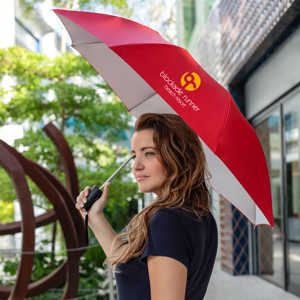 Price Includes: 1-Color, 1-Location imprint on outer canopy. Extra Print(s): $1.25(G) per color, per location on outer canopy. Extra Decorating: $2.00(G) per color, per location (on Case, Wide Tie, or Undercanopy) Setup: $65.00(G) per color, per design. For reorder information, click here. Production Time: Approximately 10 working days from all approvals. Additional Costs: PMS matching, drop ships, etc: Click here *Please note: Product specifications and pricing presented on our website supersede all other published information. Pricing is subject to change based on tariff updates. **Packages may experience longer shipping times, due to increased volumes at freight carriers.