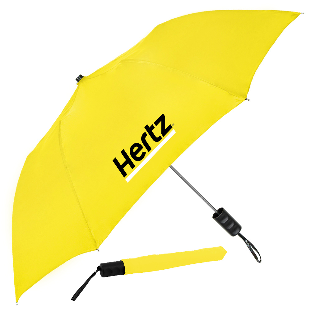 The auto-open Spectrum is the very definition of an exceptional-value folding umbrella. It has a 42” arc, sturdy metal shaft, and unbeatable price point.